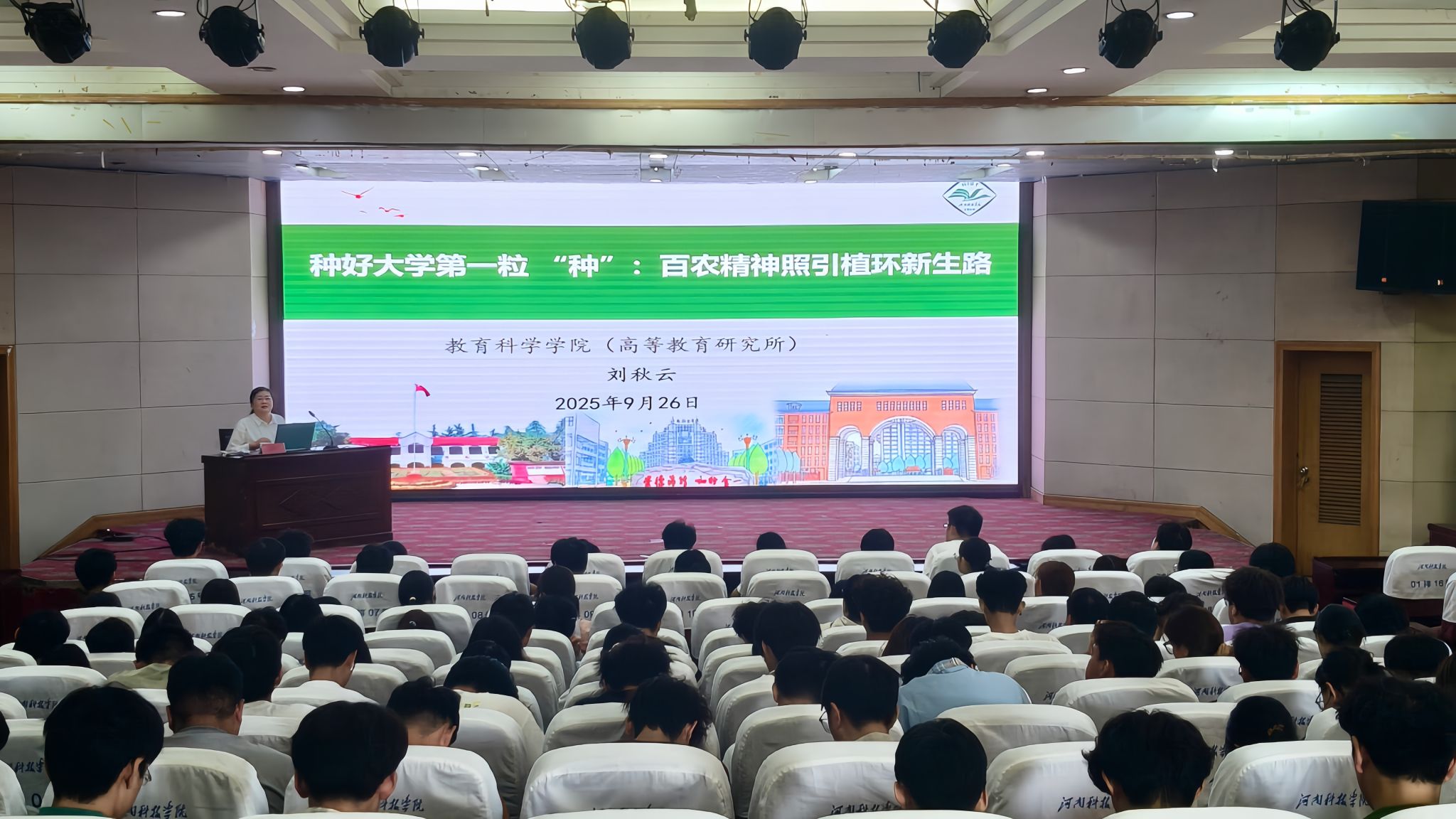 9月25日上午,植物保护与环境学院在图教201举行以“种好大学第一粒‘种’:百农精神照引植环新生路”为主题的新生入学教育活动。我校教育科学学院副院长、高等教育研究所副所长刘秋云受邀担任主讲嘉宾,学院2025级全体新生及部分教师代表参加报告会。