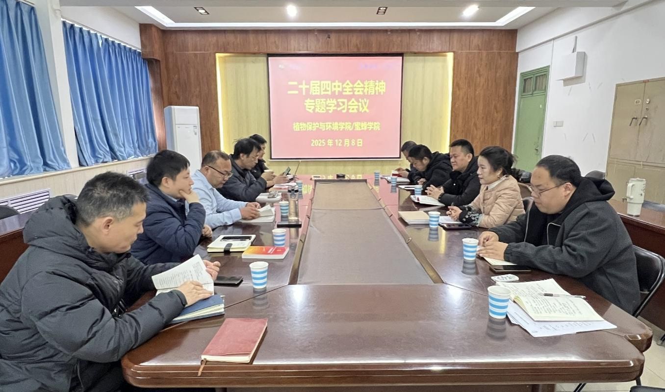 12月8日,植物保护与环境学院党委在实验楼E307会议室,召开党的二十届四中全会精神专题学习会议,深入学习贯彻全会精神,谋划学院发展新篇章。会议由党委书记王鲁伟主持,学院领导班子成员、党委委员、办公室与团委成员参加会议。