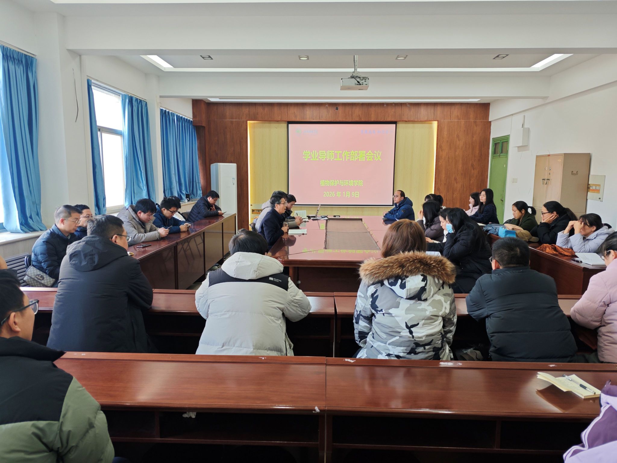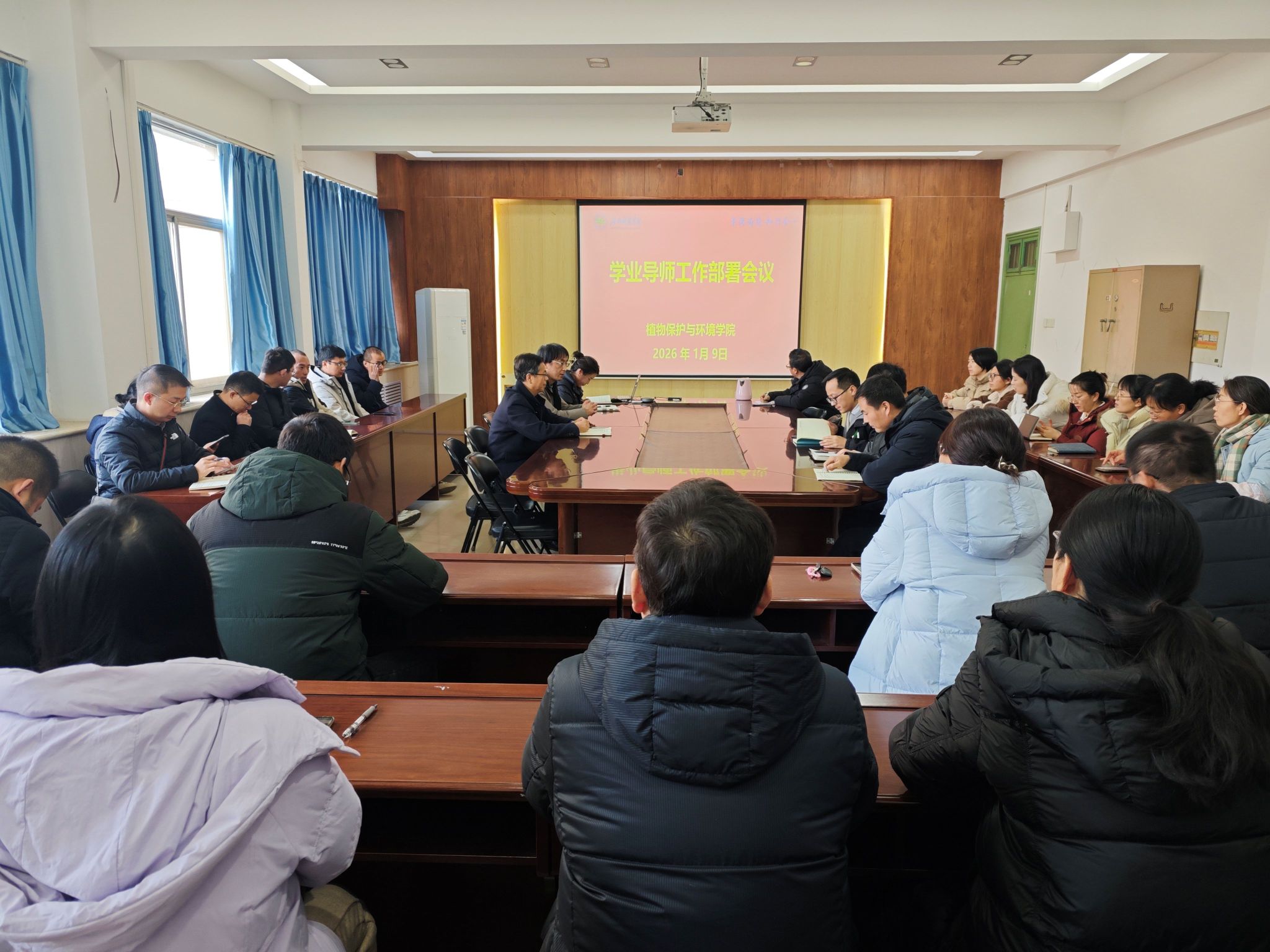 为深入贯彻落实学院学情研判暨学生工作专题会议精神,1月9日下午,植物保护与环境学院各教研室分批次召开学业导师工作部署会议,围绕期末及寒假期间学生教育管理、学业帮扶、网格化落实等重点工作进行专项安排。院党委书记王鲁伟、副院长陆宁海、全体辅导员、各教研室负责人及全体学业导师参加会议。