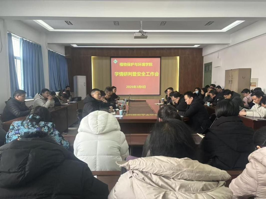 为全面掌握新学期学生学业动态,筑牢校园安全稳定防线,3月6日上午,植物保护与环境学院在实验楼E307会议室召开2026年春季学期学情研判暨安全工作专题会议。学院党政领导班子成员及全体辅导员、班主任等参加会议。
