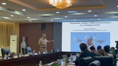 10月13日,英国自然历史博物馆(Natural History Museum, London)资深研究员 Andrew Polaszek 教授应邀在第二届“一带一路”地区昆虫多样性格局评估与智能监测体系关键技术培训班河南科技学院分会场作报告。报告会在河南科技学院行政楼 206 会议室举行,来自校内外的昆虫分类学、生态学及农业害虫防控等相关领域的专家学者和研究生共100余人参加了报告会。