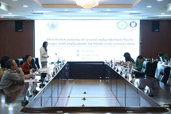 10月14日上午,河北大学杨玉霞教授应邀参加第二届“一带一路”地区昆虫多样性格局评估与智能监测体系关键技术培训班(河南科技学院分会场),并作题为“Distribution patterns of several malacodermata beetle groups, with implications for biodiversity conservation(软体鞘翅目甲虫多个类群的分布格局及其对生物多样性保护的启示)”的学术报告。报告会在河南科技学院行政楼206会议室举行,植物保护与环境学院师生代表及培训班学员等100余人参加了报告会。