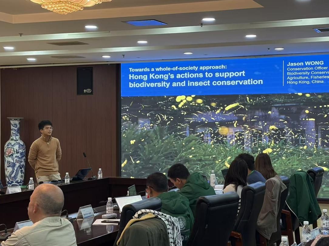 10月14日,中国香港渔农自然护理署生物多样性保护科保育主任(特别职务)黄韦缙(Jason WONG)研究员,应邀参加第二届“一带一路”地区昆虫多样性格局评估与智能监测体系关键技术培训班(河南科技学院分会场),并作题为“Towards a whole-of-society approach: Hong Kong’s actions to support biodiversity and insect conservation”的学术报告。报告会在河南科技学院行政楼206会议室举行,植物保护与环境学院师生代表及培训班学员100余人参加了报告会。