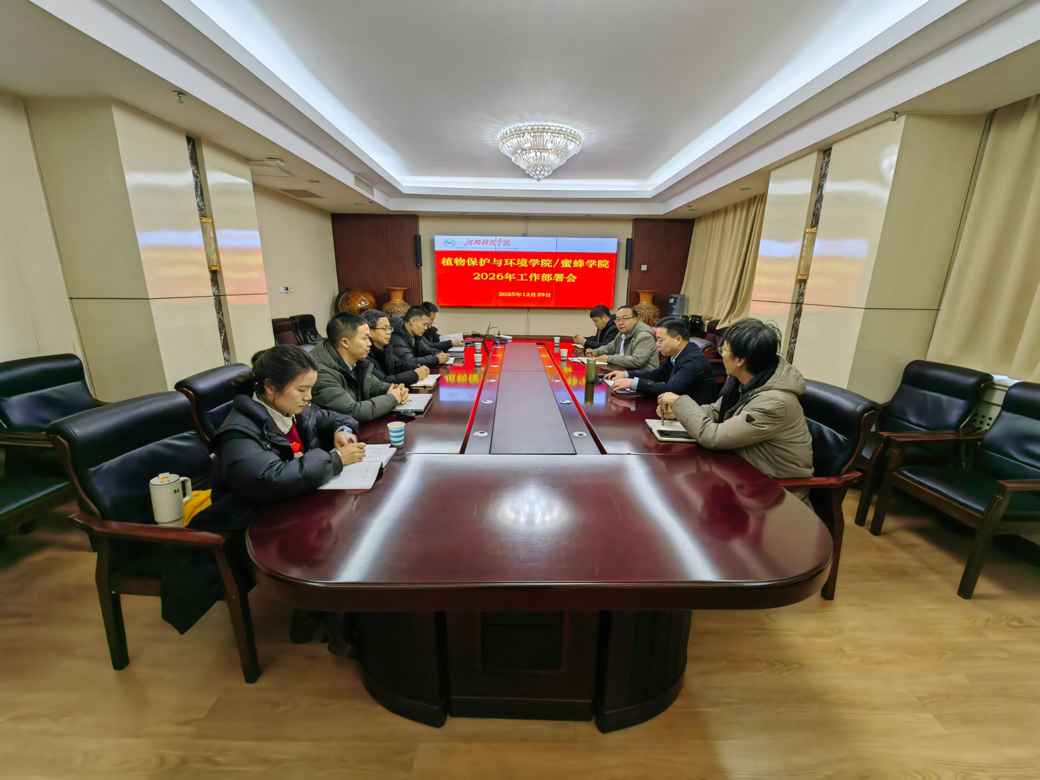 12月29日上午,植物保护与环境学院(蜜蜂学院)于办公楼1111会议室召开2026年工作部署会。副校长丁轲出席会议并指导工作,学院党委书记王鲁伟主持会议,学院班子全体成员参加本次会议。