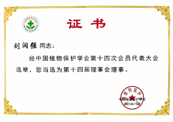 刘润强教授长期致力于植物保护领域的教学与科研工作,在农作物病虫害绿色防控、农药科学使用等方面取得了一系列创新性成果,具有深厚的学术造诣和丰富的实践经验。此次当选,既体现了全国同行对其学术贡献和专业能力的高度认可,也标志着我院植物保护学科在服务国家农业重大需求、参与全国性学术治理方面迈上了新台阶。